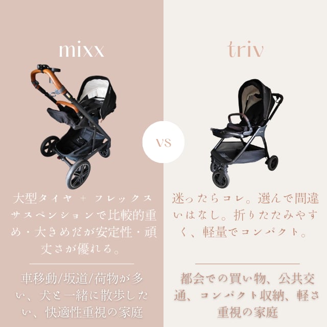 triv next の大きな特徴は、なんといってもトラベルシステムが成立する点です。nuna のベビーシートをカチッとそのまま装着できるため、赤ちゃんを起こさずに車からベビーカーへ、ベビーカーから室内へとスムーズに移動できます。特に札幌のように車移動が多い地域では、毎日の負担が大きく減る実感が得られます。この流れは他のブランドでは意外と難しく、triv next を選ぶ大きな理由になっています。